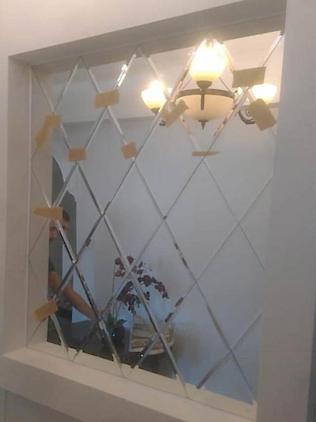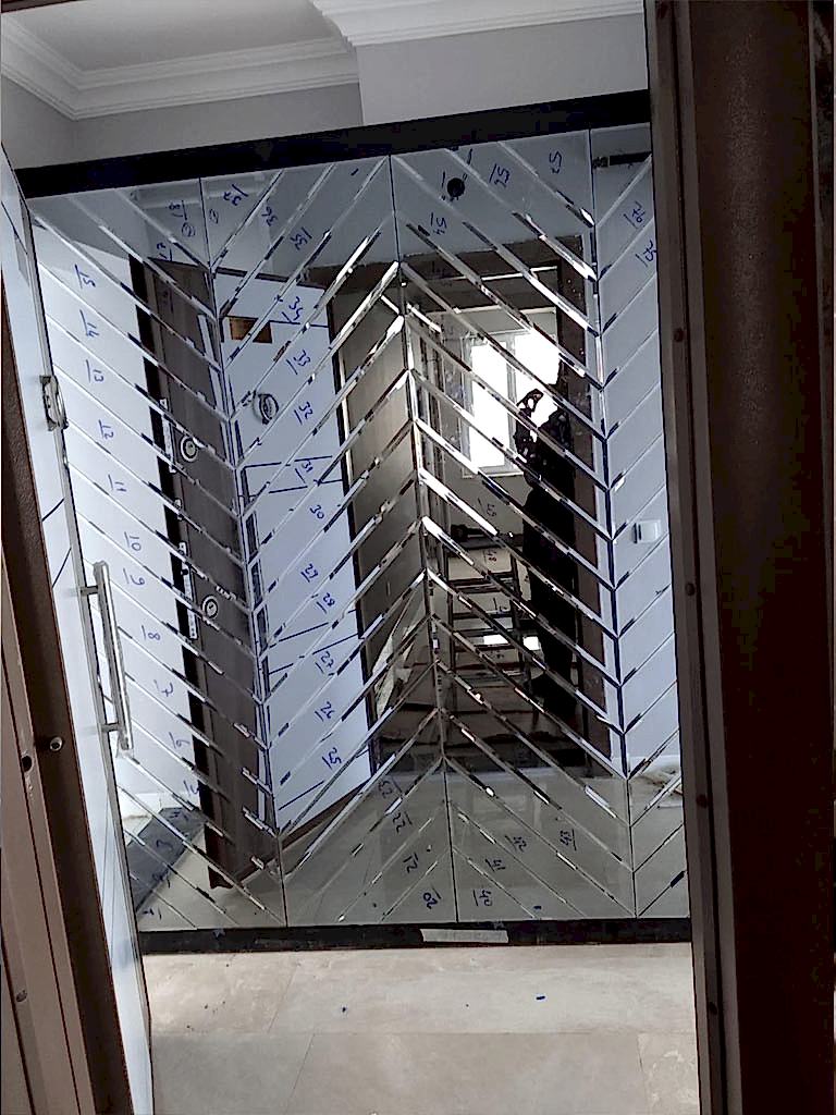 Deniz Cam Bina, Ofis, Site Girişi Baklava Desenli Dekoratif Ayna Uygulaması