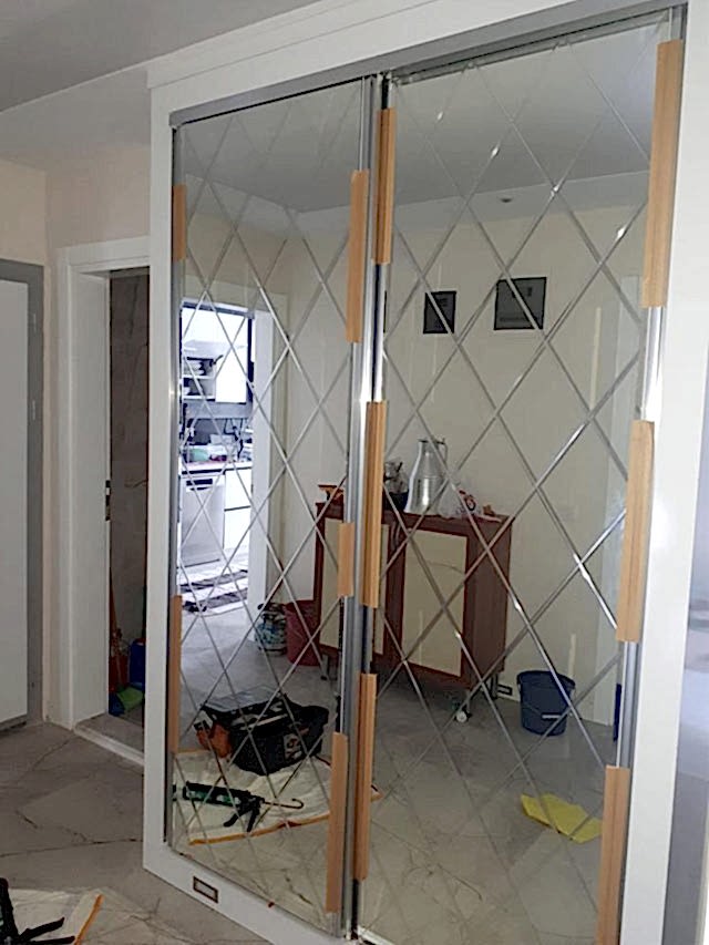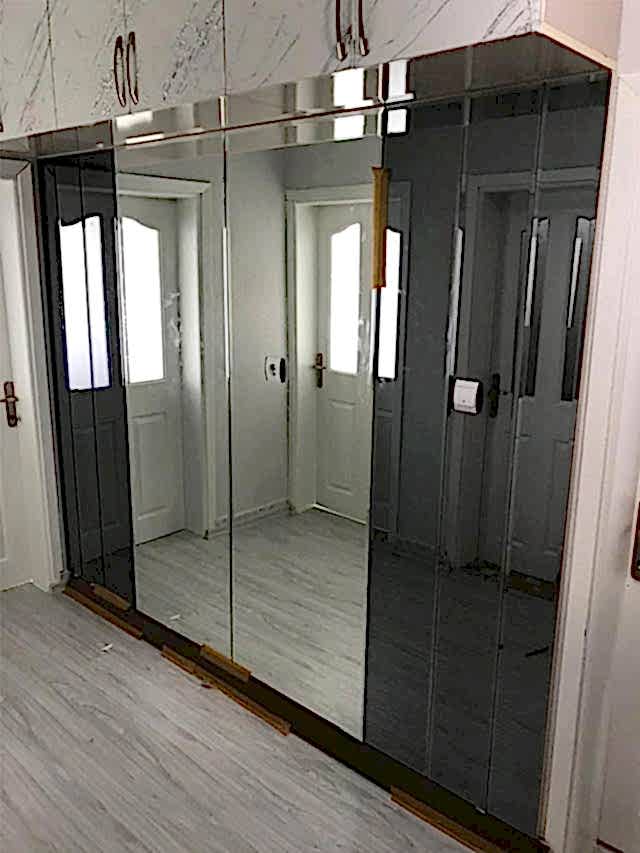 Deniz Cam Eğik Çizgi Desenli Gardrop, Portmanto Ayna Uygulaması