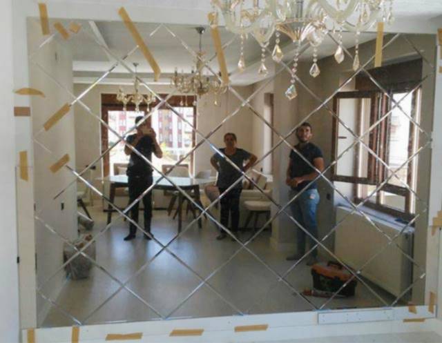 Deniz Cam Yemek Odası, Salon İçin Baklava Desenli Asimetrik Dekoratif Ayna Uygulaması