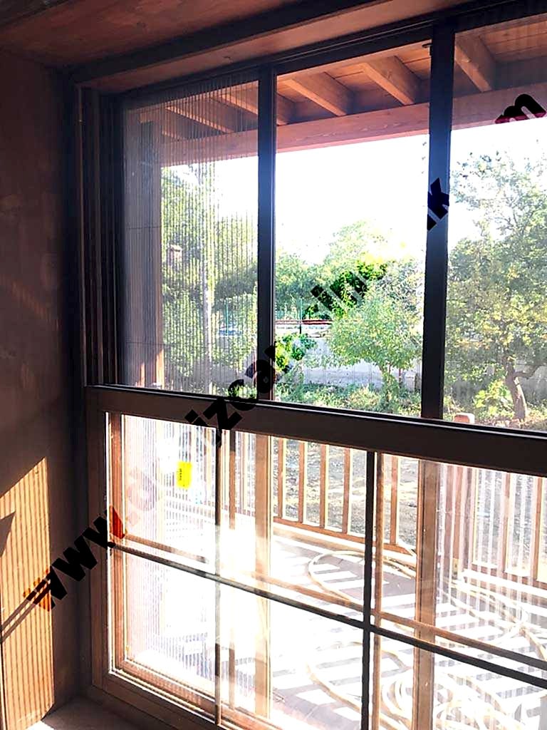 Ahşap renk duble pileli sineklik