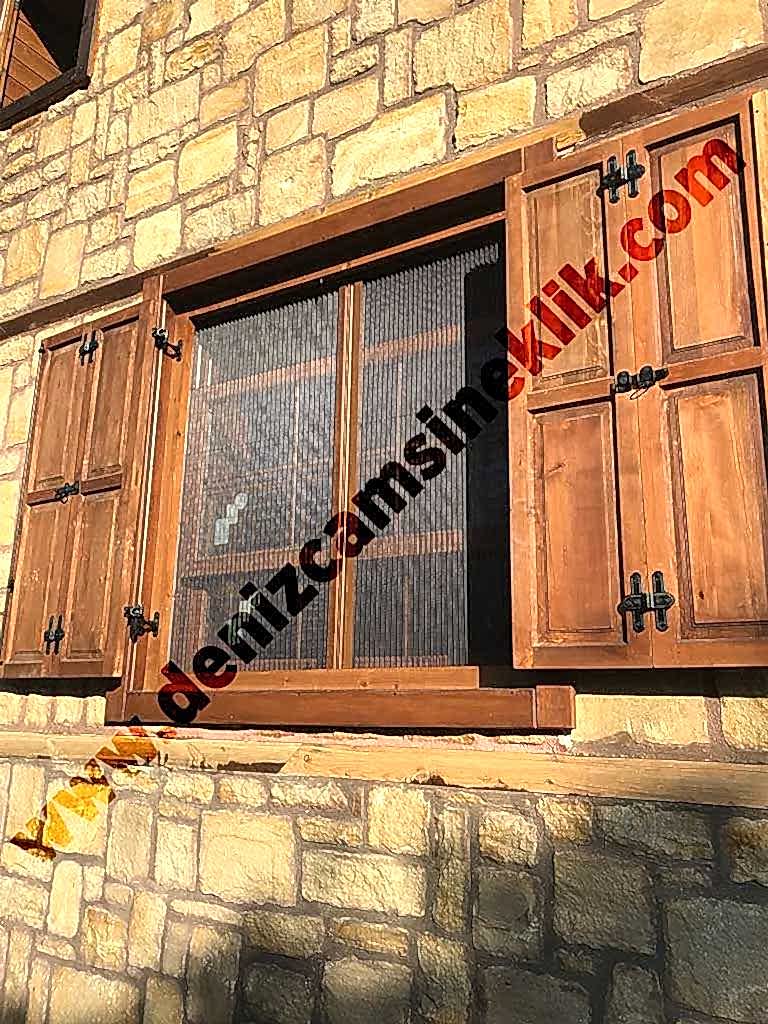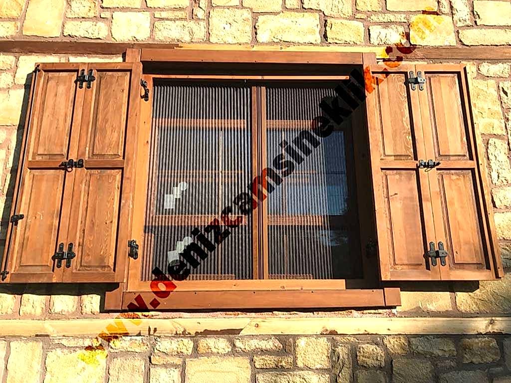 Ahşap desen duble pencere sinekliği