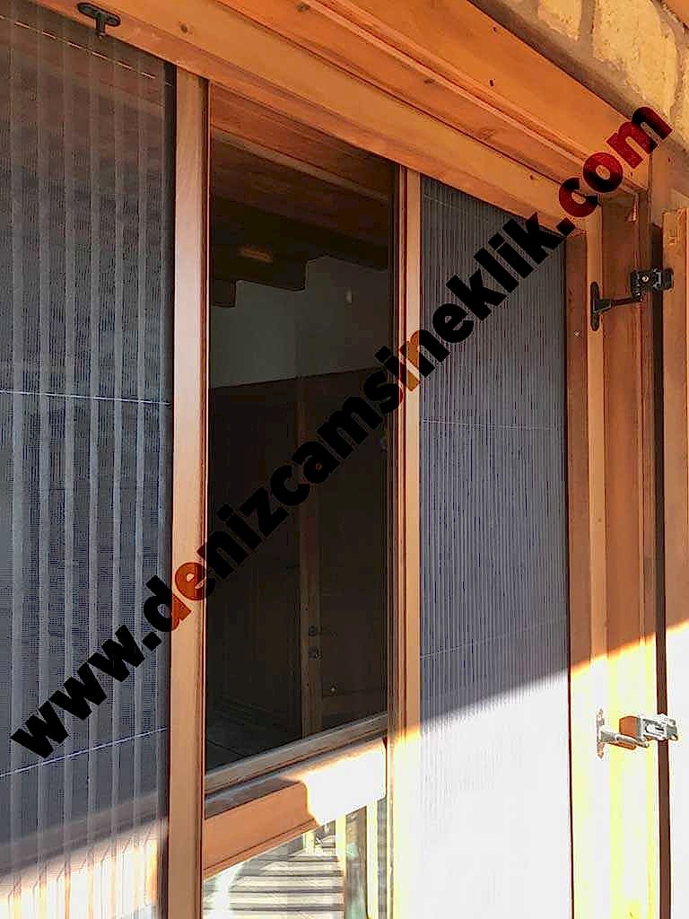 Duble açılır pileli ahşap renk pencere sinekliği